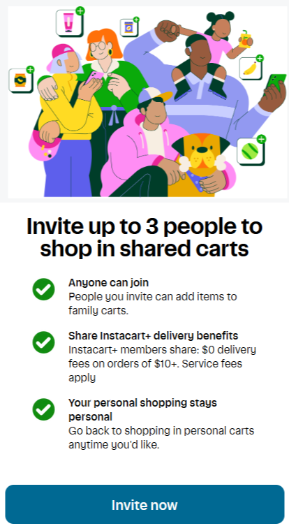 Family accounts allow each user the ability to create and place an order for just themself on the same account. This means that everyone can enjoy the perks of Rewards Shopping and Instacart+